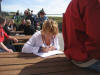 Spikerslåing konkurranse er ikkje berre for sterke gutar, her er da Randi som let spikaren få gjønnomgå. |