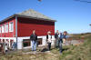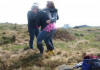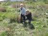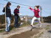 Så er da leikar ved gamleskulen. Viljar prøver lassokasting, ikkje so lett med ivrige tilskuarar. |