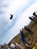 Her går da i lengdehopp. Den mannlege heimesideskrivaren tok bilde av ho Hanna i fritt svev, med livet som innsats. Ho klarte heldigvis ikkje å trakke han heilt ned i sanden når ho landa. |