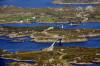 Kalvøyna,Landøyna, Indre Melværsund brua og klettane på Værlandet sett frå nordvest |