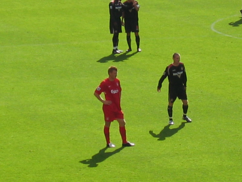Her står han Jon Arne Riise, da ser ut som om han og lurer på kor ballen er. |