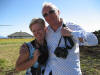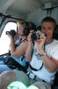 Frilansjournalist Anne Britt og heimesidejournalist Kurt er nett ferdig med helikoptertur og fotografering. Dei er godt fornøgd med turen og kvarandre |