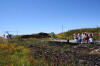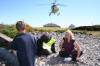 Helikopteret har nett landa og dei neste passasjerane er klar for tur |