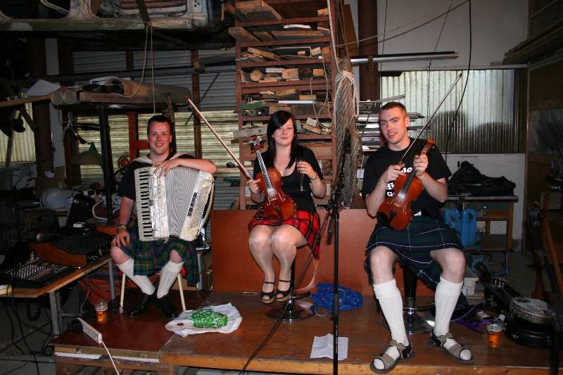 Mathew, Dana og Nicholas spelte opp med flotte skotske folketonar om kvelden på Værlandet båt. Like smilande å blide alle tre. |