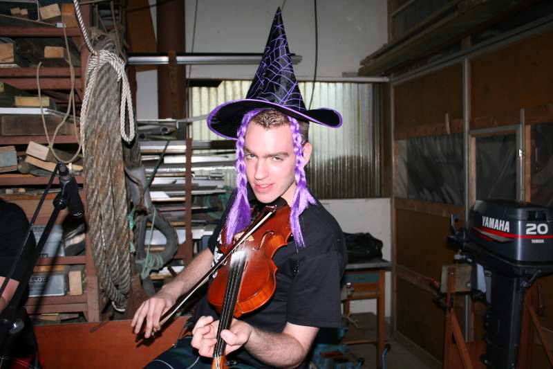 Nicholas med hatt, fletter, fele og godt humør |
