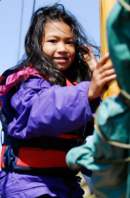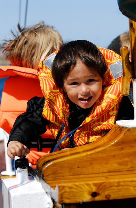 Ungane er klar til å være med på sjørøvartokt, og "Hanna den Henrivne" legg frå kai. |