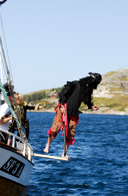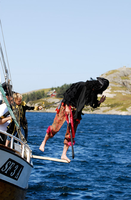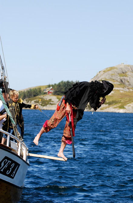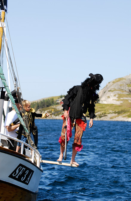 Som einkvar sjørøver så må Kurt den Krakilske gå planken av og til han og. Peder er streng og tvinga sjørøvaren til å gå så langt planken rekk og litt til |
