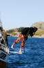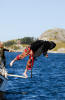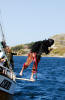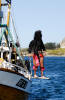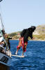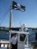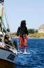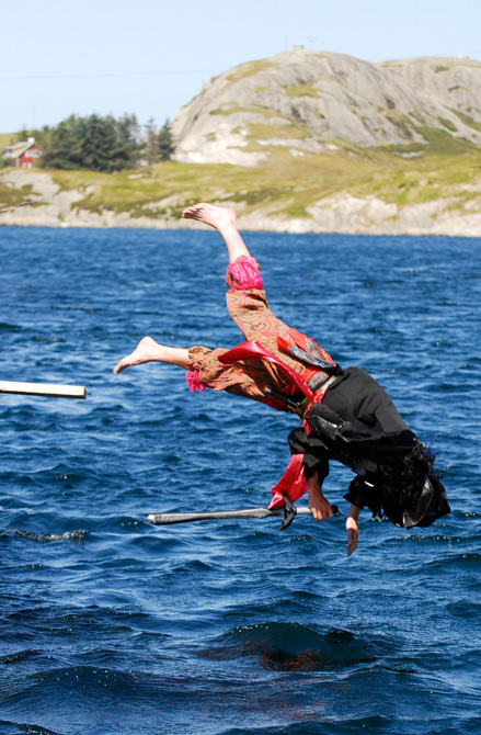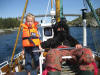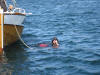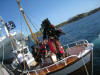 Rune er raskt ute med eit hjelpande tau i tilfelle sjørøvaren skulle gå under igjen. |