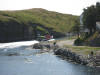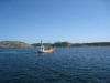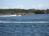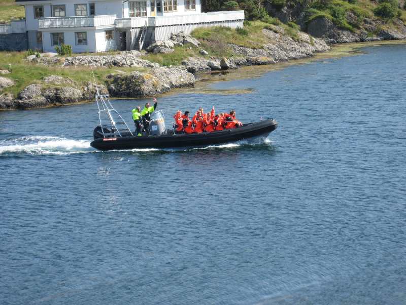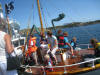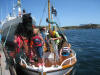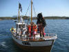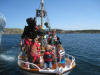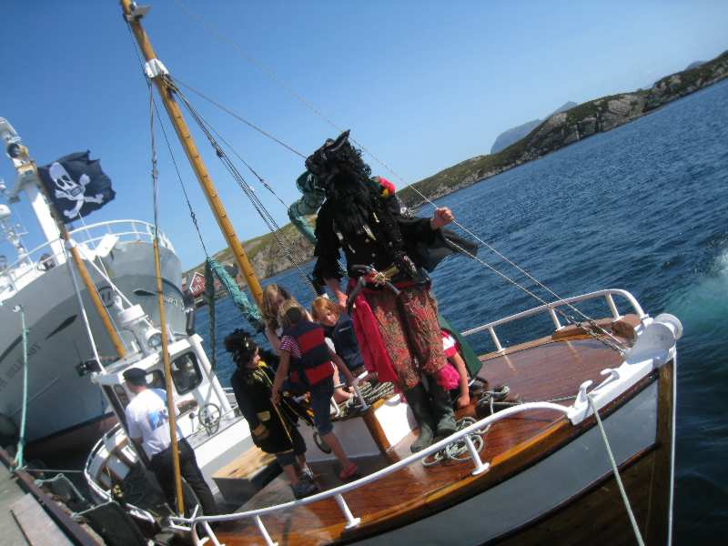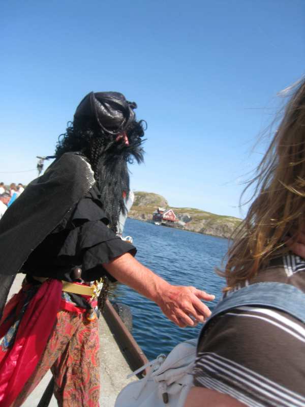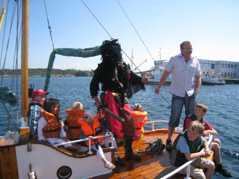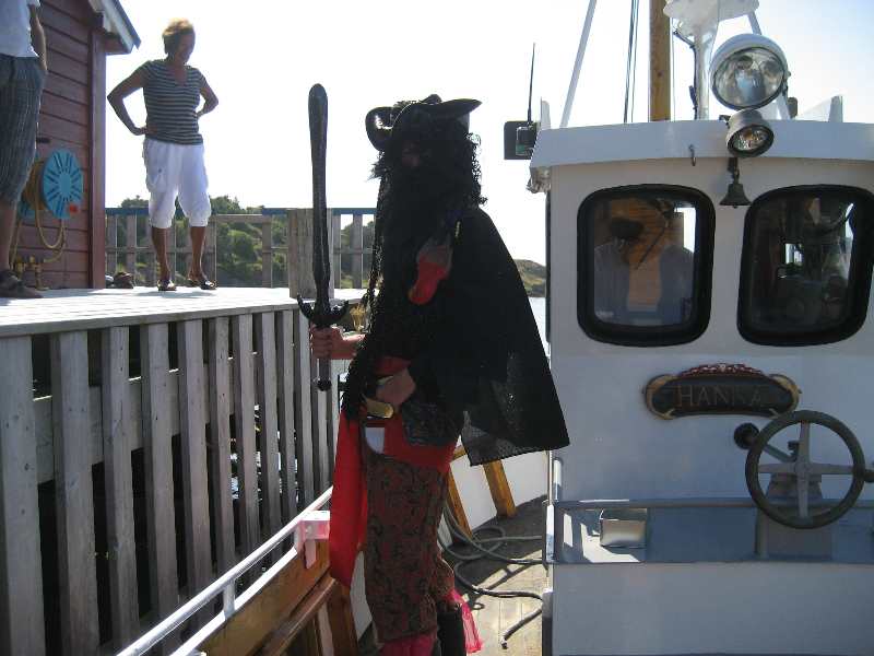Nokre truskyldige unger kom forbi i påhengsbåt, sjørøvaren skremde so godt han kunne utan noko særligt skremmande resultat |