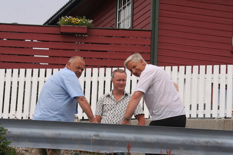 Dagfinn, Fred og Jarl står og drøsa i veien neafor huset til Pippi og Atle, tideleg på morningen. Dei diskutera nok litt marknad og mykje pale kan eg tenke meg. |