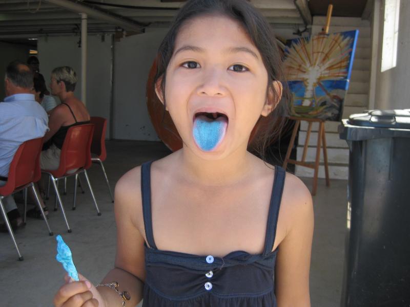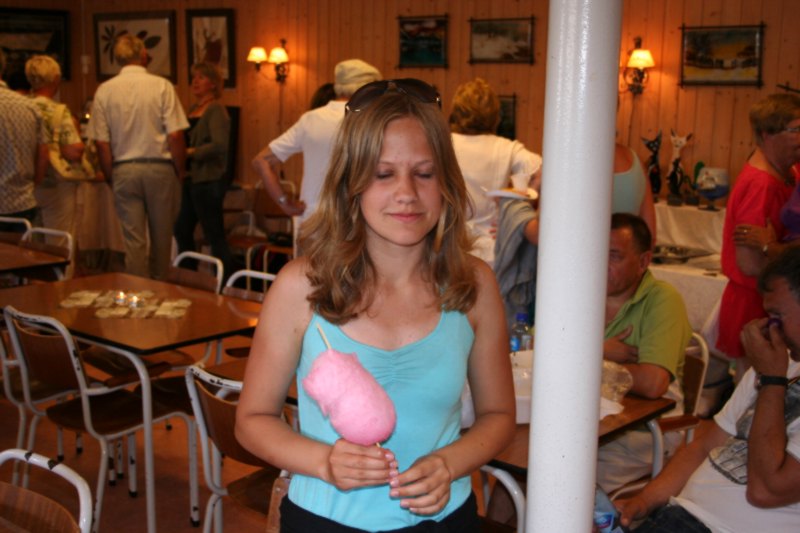 Mmmm, Anja ser verkelig ut til nyte sukkerspinnet sitt. Dei er no like søte begge to, både Anja og sukkerspinnet. |