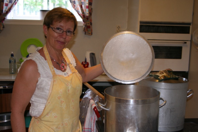 Kjellfrid er klar med kjøtsuppa si, og alt er under kontroll. Nokre heimelaga kaker har ho og på lur. |