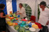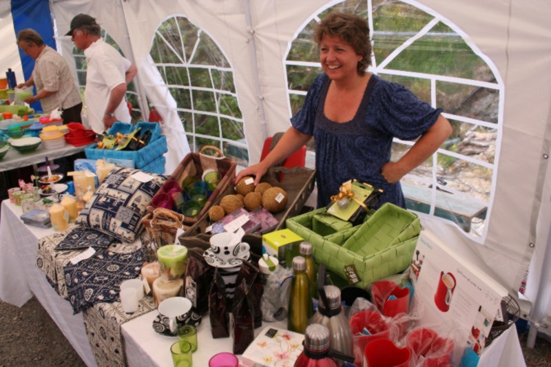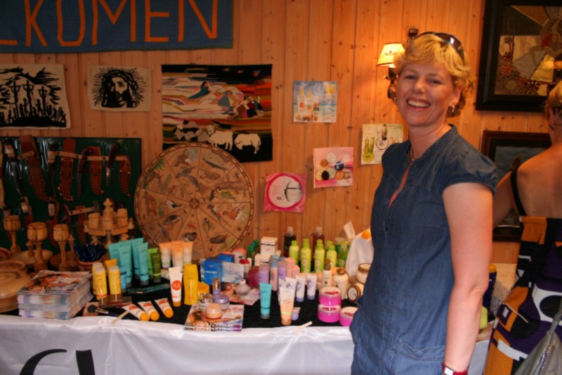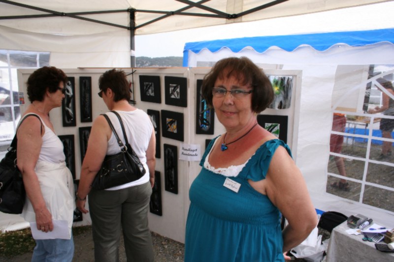 Kari Storesund hadde mykje fine glasting og smykke på standen sin, og da såg ut som om publikum syntes da same. Her har heimesidefotografen renska unna publikum for å få eit fint bilde av Kari og standen hennars. |