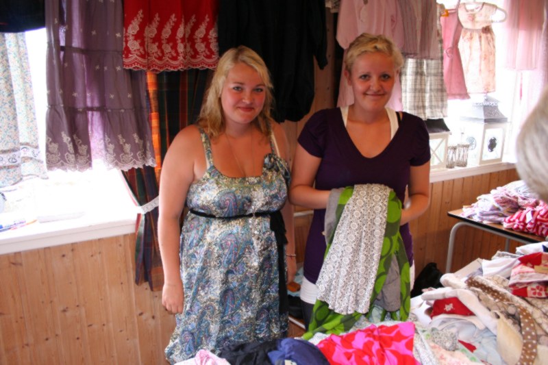 Mathilde og Karoline passa standen til Irene Spukreland, "Farmors Hus". Du gjorde ein utmerka jobb og kundane stimla rundt dissa flotte og smilande jentene, både for å kjøpe klede og å kikke litt på fine jente. |