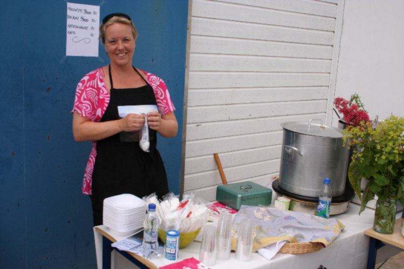 Demitrij, bror til Antanina Semcenko Melvær, selde russisk rødbetesuppe. Suppa heiter vist "borscht" på fagspråk. Suppa smakte godt og Dimitrij var like smilande og blid heile tida, nett som Antanina. |