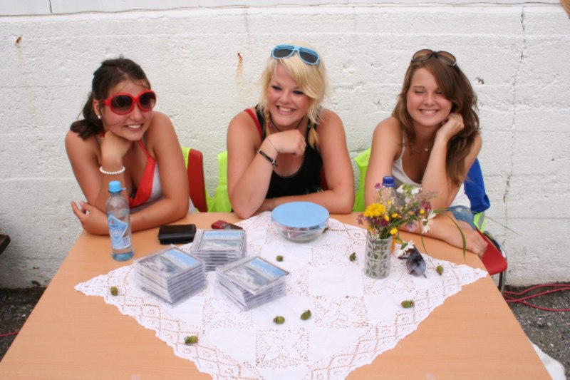 Kari, i midten, har fått selskap av nokre like fine venninner, mens ho sel DVD'n som 10.klasse har laga. Eit mesterverk av ein DVD som heiter "Ein heim for oss ein heim for deg", ein DVD som kan anbefalast til alle. |