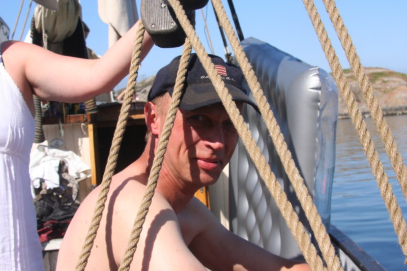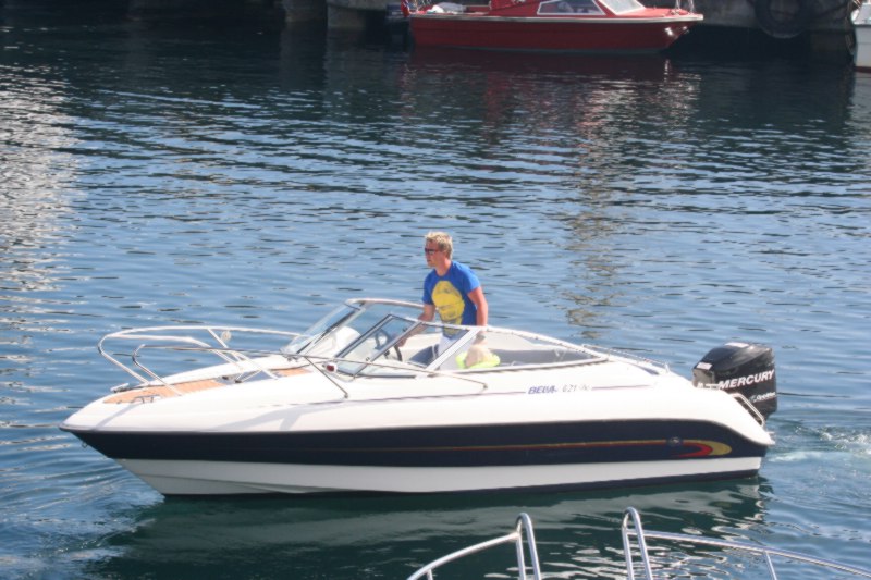 Arin Kjempenes i sin litt røffare båt. |