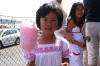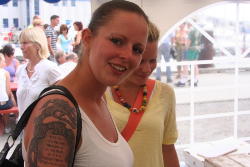 Liv på standen for Nordsjøportpasset. Lisa kom bortom for å vise kor fin ho var, med ansiktsmåling og greier. Men så snart heimesidefotografen tok fram kamera, så blei ho so beskjeden at ho ikkje viste kor ho skulle gjere utav seg. Eit fint bilde vart da no uansett om ikkje Lisa likte dinna innpåslitne fotografen. |