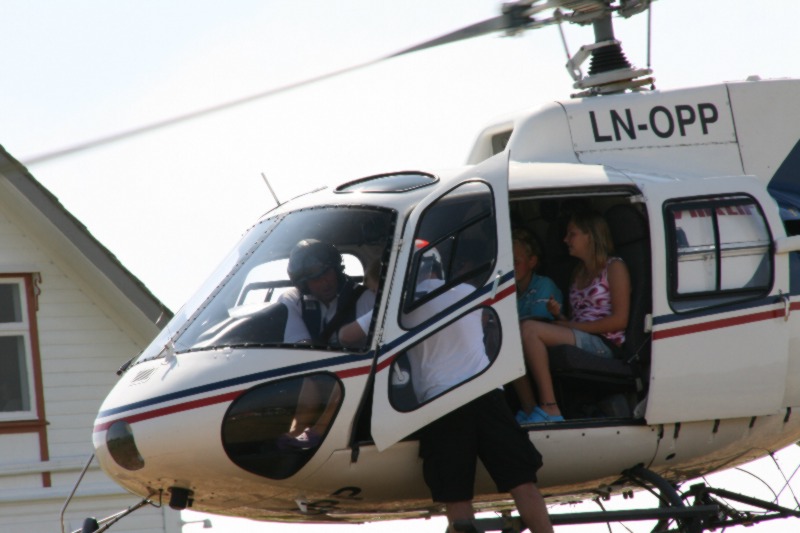 Trygt landa da og, på plenen til Anders. Da er mykje bråk frå eit slikt helikopter, so Anders treng nok litt hørselsvern i dag. |