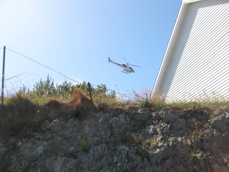 Helikopteret til Airlift gjekk i skytteltrafikk heile tida. Her går da inn for landing nok ein gong. |