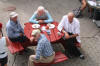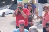 Raude Krossen hadde stand og, her sit dei å kosa seg under parasollen som dei hadde vore så lure å ta med seg. |