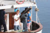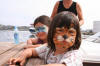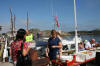Ungane ombord i båtane ved gjestebrygga har vakna til og. Dei er klar til ein lang dag på marknad, men fyrst litt kos på dekk. |