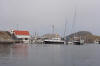 Gjestebrygga sett frå sør, trakkande full i båtar. |