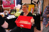 Da er eit stress heile dagen bak kassa i butikken, og Bjørg har begynt å verte slita, men ho står løpet ut som ho alltid gjere. So må da nevnast at Bjørg var litt uheldig på bilde, men da er einaste bilde heimesidefotografen fekk av Bjørg den dagen, og ei heimesidereportasje utan bilde av Bjørg vert liksom ikkje da same. Ho pynta opp i alle samanhengar. |