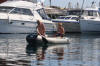 Ein treng ikkje ha båt, berre ein koser seg og har da kjekt. Den mannlege heimesidefotografen har vel aldri sett ein meir delikat farkost, når han ser bort frå dinna kvite skikkelsen i midten. :-) |