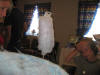 Anne Britt sjarmerte ikkje berre tilfeldige kunda, ho sjarmerte slekt og venner og. Her er kallen Geir, som nok har vore sjarmert mange gonger før, og Øystein Sandøy som er i full sving med å lense litt ut av ei velfylt lommebok. |
