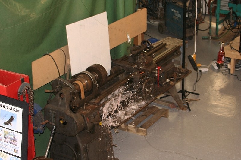 Dag kikka bortøve dreiebenken etter dåpssermonien. Han ser litt mørkt på alt sølet, men da skal nok ordne seg til puben opna seinare på kvelden. |