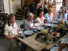 På andre sida av bordet er da ei like stor forsamling av prominente gjesta. Fra venstre Geir Randby, Nils A. Sandal, Dag Leite, Gry Leite og Linda Landøy. Bak står Janne og er imponert øve både kallen og resten av gjengen. |