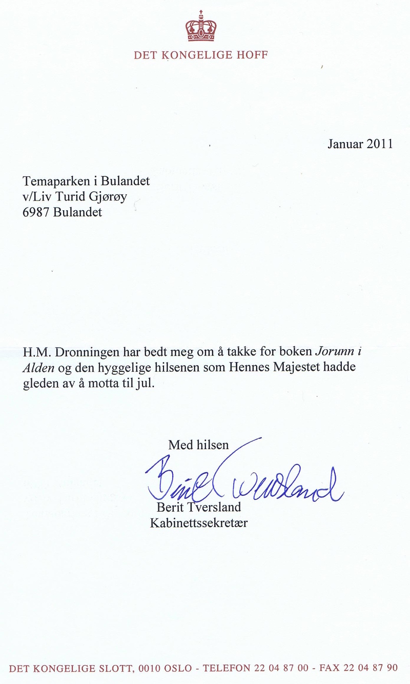 i blinken sidan Dronning Sonja har vore på Alden. Liv har fått fint takkebrev i