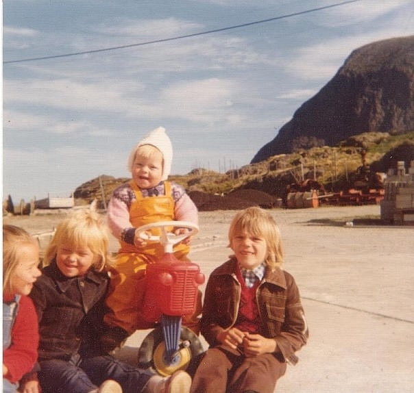 ![]() Eit bilde frå 1974 eller 1975. Ho Laila som sit på sykkeltraktoren er fødd i mai 1973 i alle fall. Bilde er teke på kaia i hamna på Værlandet. Frå venstre ser vi Gro Værøy, Anne Britt Fedøy, Laila Fedøy og Inge Værøy. |