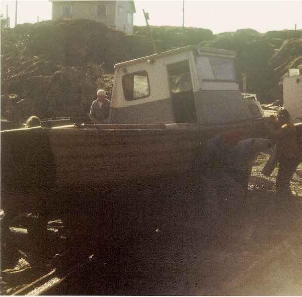![]() Harald Leite skriv: Når vi har fått ut "Balder" so skal snekka til Henrik Leite opp. Når vi hadde sjøsetting og slipping so var det viktig at vi var godt hjelpa. Ombord i "Brasen" ser vi Jonas Leite i gul oljetrøye saman med Harald Leite. Dei som står på land er frå venstre: Henrik Leite, Bodvar Værøy og Karl Kjempenes som her styrer tauet. |