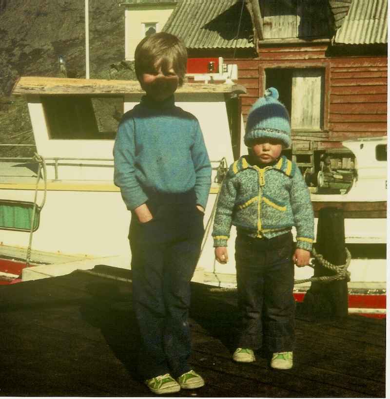 ![]() Harald Leite skriv: Når det føregjekk seg slipping og sjøsetting i Hittunstøa var det spanande for ongane og vere med for å sjå på åtbersla. Her ser vi Gry og Joar Leite på kaia til Henrik. Bak dei ligg båten til Harald Fedøy. |