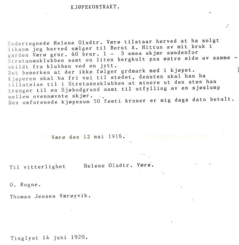 ![]() Kjøpekontrakten for tomta der Nybua vart bygd. |