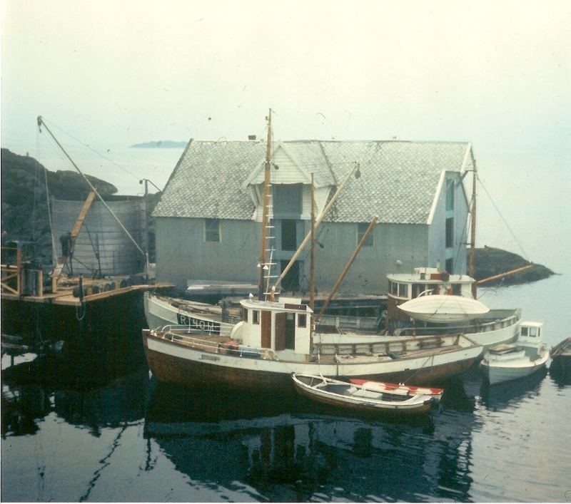 ![]() Harald Leite skriv: På 1950-talet starta Hittunskarane Andreas og Johan taremottak for a/s Protan i Haugesund på Nybua. Dei tok fyrst i fleire år imot tørka fingertare, seinare bygde dei silo og tok då også rå fingertare. For oss som vaks på Værlandet i denne tida var dette eit kjærkome tiltak. Båtar hadde vi og dei ordna det også slik at vi kunne kjøpe eller leige tarebåtar som a/s Protan skaffa. I sumarhalvåret var vi mykje opptekne av tareskjering og draksing av taren på land ute i holmane for tørk. Når vi kom til taremottaket med hågraka båt med tørka tare, då var vi ikkje lite krye. Pengane fekk vi kontant på "labben". Seinare vart også denne næringa mekanisert og store trålarar overtok. Mottaka vart sentraliserte og taremottaket på Værlandet vart nedlagt. Bilete er teke kring 60-talet og vi ser a/s Protan sin føringbåt Røværskøyta "Langøy", på sida av henne ligg Hittun II, bak desse ligg Hansasabben. Snekka ved Hittunsgavlen trur eg er Jon Fedøy si. |