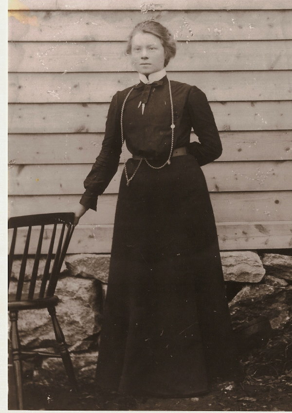 ![]() Her ser vi Mariana. Det var systra til Maria. Ho var sjukepleiar. Det seiest at ho var svært langbeint og ei historie vil ha det til at Henrik ein dag hadde lurt på om det var han Anton som gjekk på stylter på rabben (området vest for huset), men då han såg nærare etter, var det ho Mariana på veg i floren. |