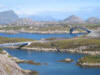 Brua over Olsundet, ser ut som ein sjøorm som snor seg i landskapet. |