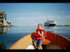 Her er Johannes på tur for å kikke på kranskipet som heiser på plass eit bru-kar i Ytre Melværsundet. |