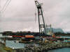Her har kranskipet komt for å hente deler av bruene på kaia Foto av Eli Sandøy. |