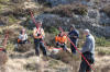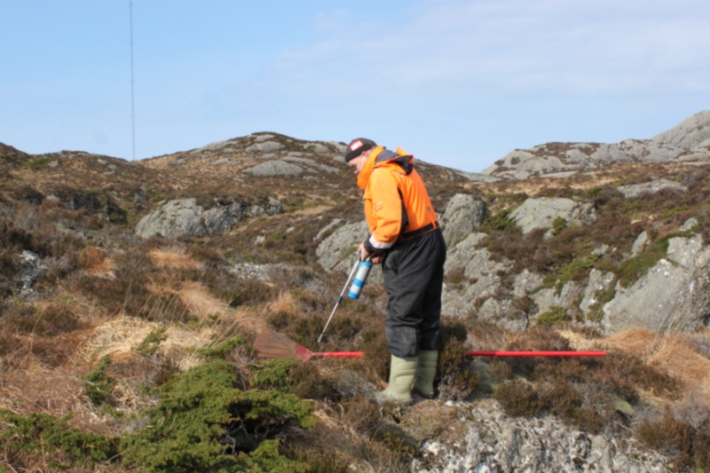 Arve har vært på kurs for å starte og stoppe lyngbranner, og held ein kort introduksjon om korleis vi andre pyrohjelperane skal halde dinna brannen under kontroll. Da er viktig å ikkje daske for hardt med dissa sløkkepinnane, passe seg for røyken og være observang på endringa i vindretning. |