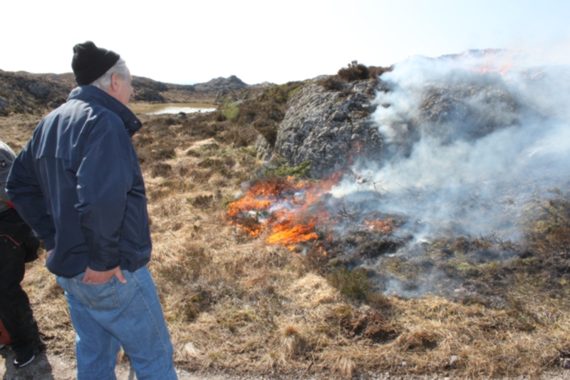 Jarl kom på inspeksjon, og hadde masse gode råd å komme med. Trass råda så gjekk lyngbrenninga fint likevel. |