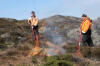 Etter 3 timer så er bota med lyng brent vekk, og brennarane kan ta seg ein litt meir avslappa positur. |