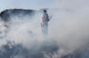 Pyrosjefen sjølv, Arve Kjempenes, er i full sving med å sette fyr. |
