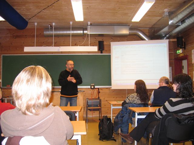 Flittige og lydhøre deltakarar under forelesningsdagen,