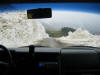 Vi levde farleg - her passerer vi gjennom raset ikkje lenge etter at vegen var opna etter oppryddinga.