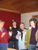 Koseleg samver i peisestova på jordbruksskulen. Fv Karine, Neil, Isabelle og Astri. |