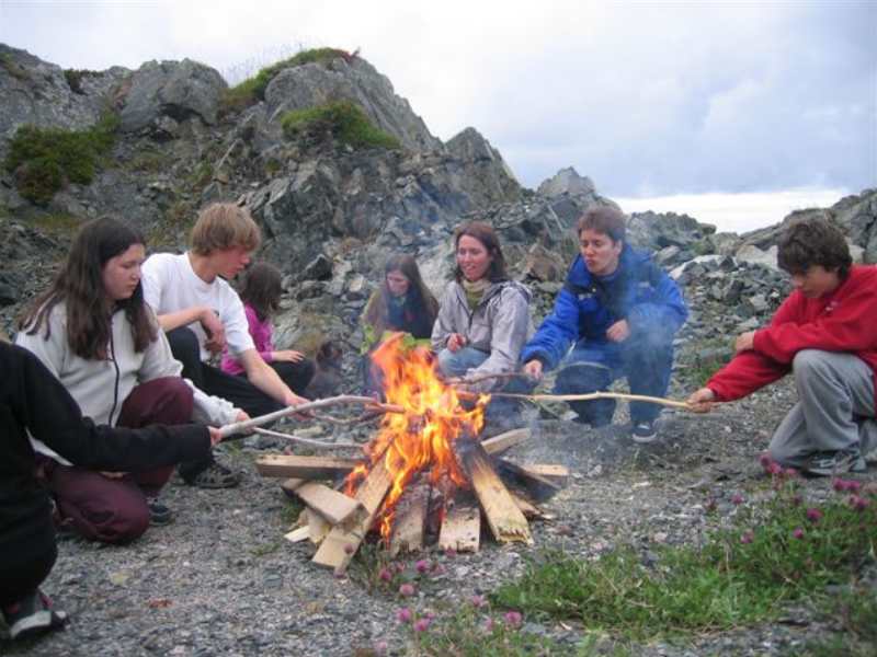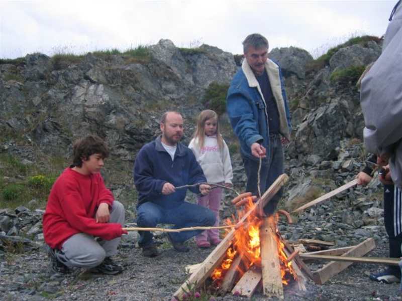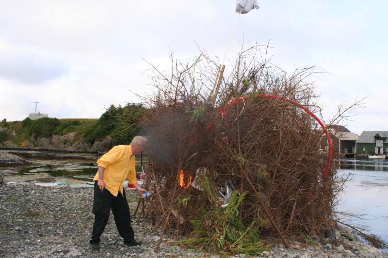 Her er fyrste forsøk på å tende bålet. |